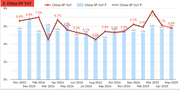Tăng 5.8% YoY, chậm lại từ mức 6.1% trong tháng 4 và thấp hơn kỳ vọng 5.9%.
