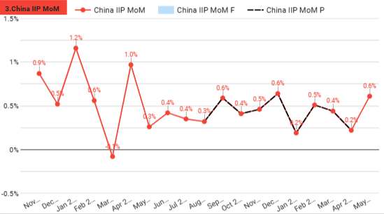 - Tăng 3.7% YoY (thấp hơn kỳ vọng 3.9%) trong 5 tháng đầu năm.