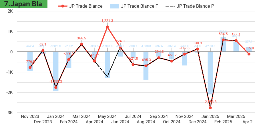 - Nhập khẩu giảm 2% xuống còn JPY 9.273,00 tỷ, đảo chiều so với mức tăng 1,8% của tháng 3, nhưng mức giảm này nhẹ hơn dự báo nhờ các biện pháp hỗ trợ của chính phủ như trợ giá nhiên liệu và hỗ trợ hóa đơn điện. ⚡️