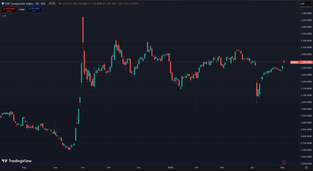 • Kỳ Vọng Tăng Trưởng: Các động thái này sẽ giúp duy trì tăng trưởng trong bối cảnh chiến tranh thương mại với Mỹ. Thị trường kỳ vọng rằng các biện pháp này sẽ giúp kìm hãm lạm phát, đồng thời đẩy mạnh các ngành công nghiệp quan trọng như công nghệ và sản xuất.